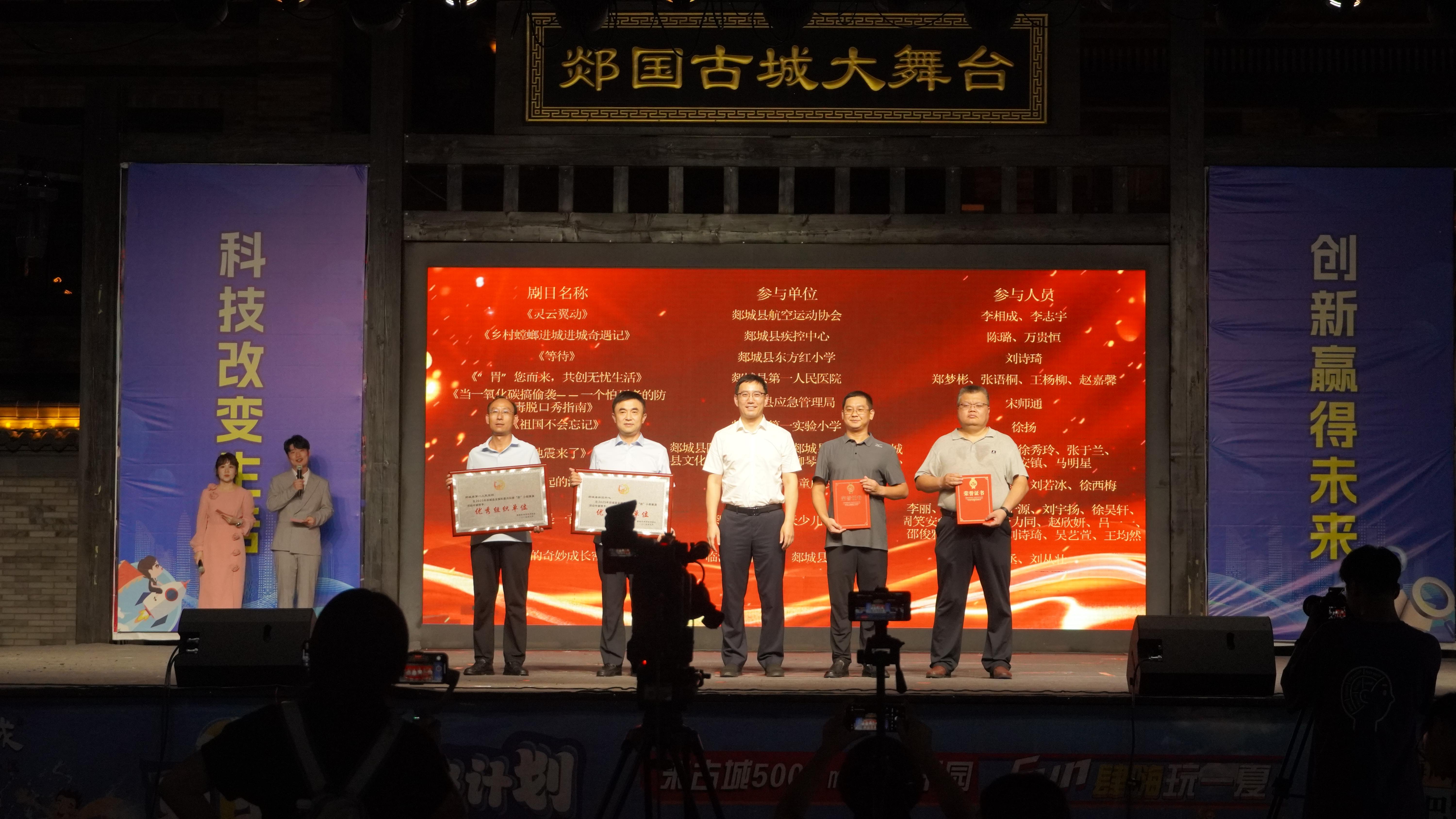活动以“科技改变生活 创新赢得未来”为主题,开启科学与艺术交融的盛宴。启动仪式在翱翔的无人机航模表演《灵云翼动》中拉开帷幕。科学实验秀《了不起的泡泡》带领观众一起探究泡泡的威力。演讲《等待》以女儿视角向观众讲述了“父亲”——两弹元勋邓稼先的故事。情景剧《乡村蟑螂进城记》带观众沉浸式走进微观世界,看小小昆虫如何引发健康思考。歌曲《祖国不会忘记》用旋律传递对科学与祖国的热爱。小品《地震来了》带领观众一起学习地震应急的“关键指令”。脱口秀《当一氧化碳决定搞偷袭》教观众如何识破一氧化碳的“偷袭诡计”。《“胃”您而来,共创无幽生活》用情景剧的形式破解胃部“木马病毒”——幽门螺旋杆菌。启动仪式上,为科普“郯”小剧品牌揭幕。还为2025年郯城县全国科普月科普‘郯’小剧“优秀作品”及“优秀组织单位” 代表、2025年第二十九届七巧科技系列活动全国总决赛中获奖的学校、老师代表颁奖。启动仪式在县科协原创歌曲《科普是一首歌》中落下帷幕。活动现场,县科技局、县农业农村局、县应急管理局、县消防救援大队等9个部门单位同步开展科普展览工作。